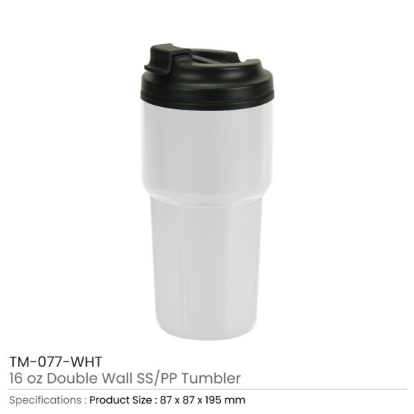 Double Wall SS & PP Tumblers Flip-top PP Lid in 473ml