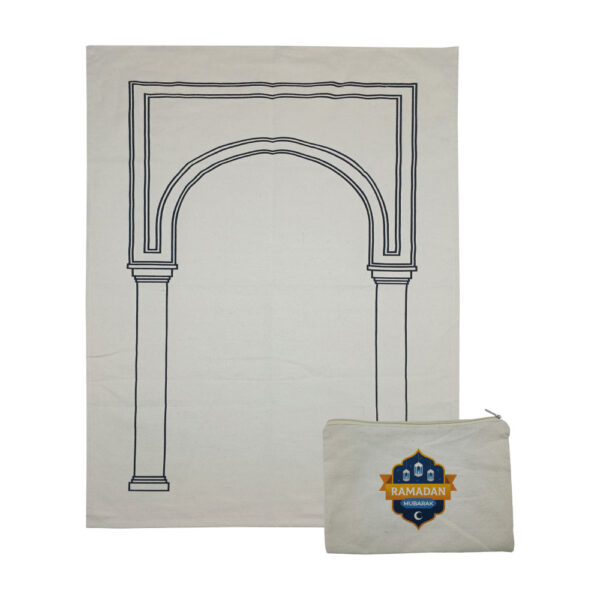 This compact and beautifully designed prayer mat comes in a convenient packing pouch, making it ideal for daily use and travel. Made from eco-friendly cotton, it offers comfort and sustainability for prayer rituals. A convenient and compact prayer mat, neatly packed in a portable pouch. Perfect for on-the-go prayers, offering comfort and practicality during Ramadan and beyond. Ideal as a thoughtful gift for loved ones.